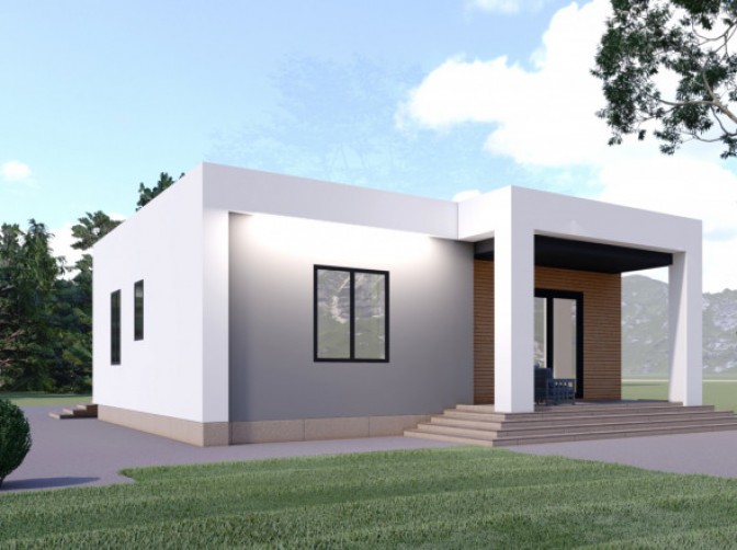 «Энкель» – это лаконичный, стильный и удобный одноэтажный дом, созданный для комфортного проживания небольшой семьи. Его продуманная планировка, компактные размеры и минимальные затраты на строительство делают его отличным выбором как для постоянного проживания, так и для загородного отдыха.